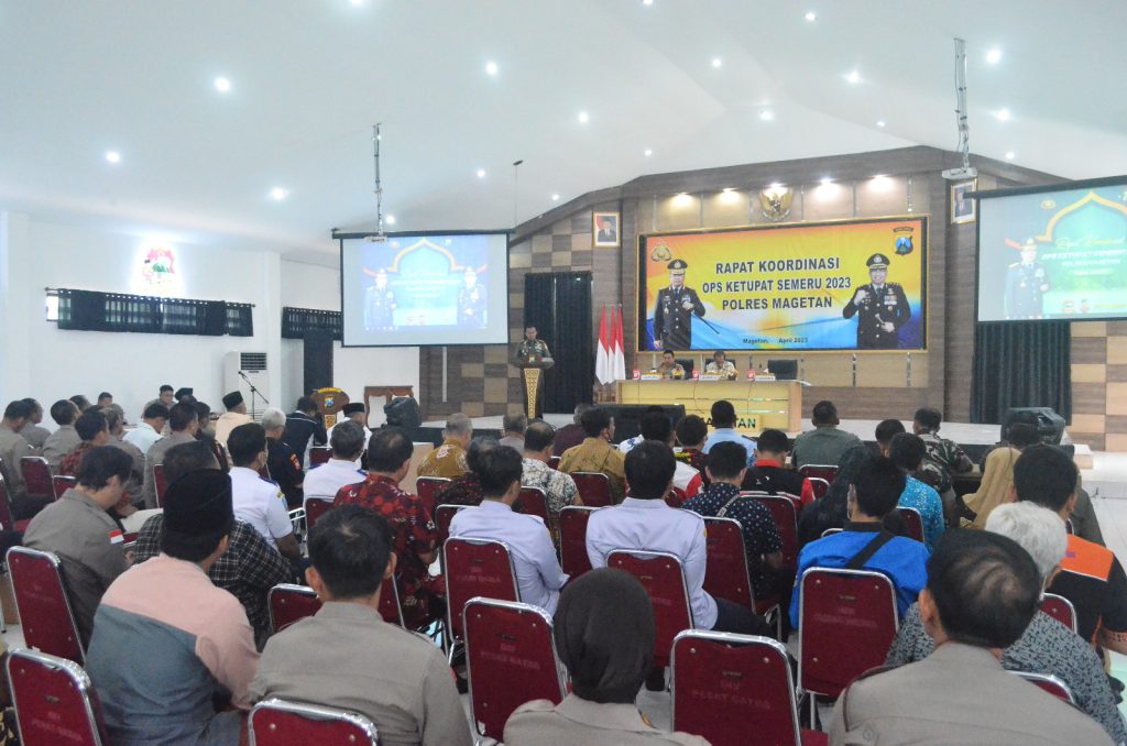 Magetan, jendelanusanews.com – Dandim 0804 Magetan Letkol Inf Dani Indrajaya, menghadiri kegiatan Rapat Koordinasi Operasi Ketupat Semeru Tahun 2023 dalam rangka pengamanan Hari Raya Idul Fitri 1444 H dan pengamanan arus mudik maupun arus balik Tahun 2023 di wilayah Magetan, bertempat di Gedung Pesat Gatra Polres Magetan, Kamis (13/4/2023).