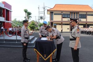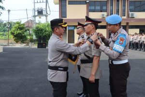 Bojonegoro, Jendelanusanews.Com.Kapolres Bojonegoro AKBP Mario Prahatinto, SH, SIK, M.Si memimpin upacara serah terima jabatan (sertijab) Kasat Intelkam dan Kenaikan Pangkat Pengabdian di halaman Mapolres Bojonegoro, Kamis(1/2/2024).