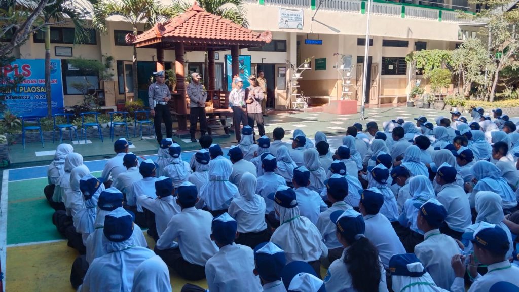 Bertempat di halaman SMP 1 Plaosan, sekitar lebih 200 berkumpul dari murid kelas VII yang baru masuk sebagai siswa baru, mendapatkan edukasi terkait adab dan sopan santun berlalulintas dijalan,
