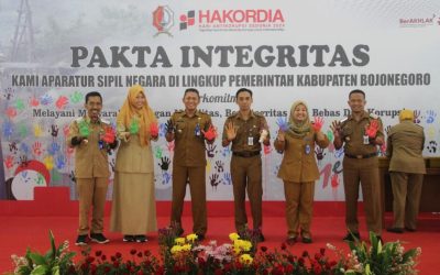 Pemkab Bojonegoro Gelar Pakta Integritas Melawan Korupsi dengan Pembubuhan Cap Tangan Antikorupsi