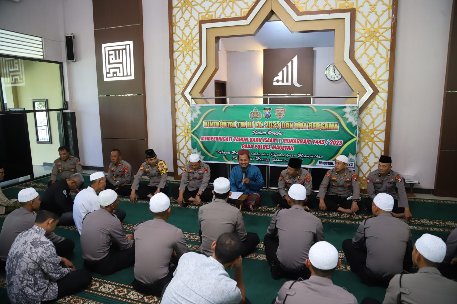 Kapolres Magetan AKBP Muhammad Ridwan, melalui Kabag SDM Kompol Suwito, menyampaikan Tahun baru Islam atau Hijriah, adalah perayaan awal tahun penanggalan tahun Hijriah,