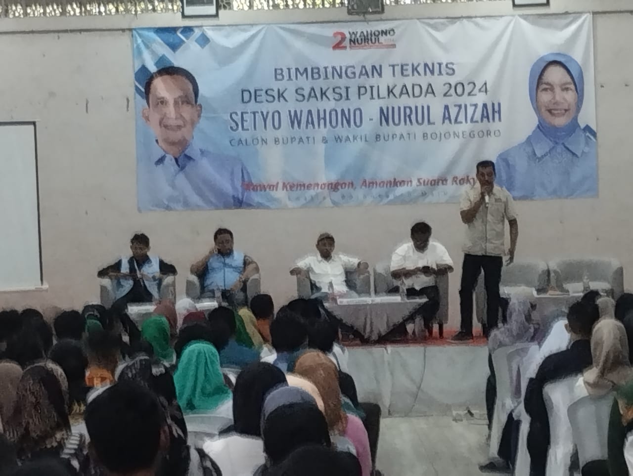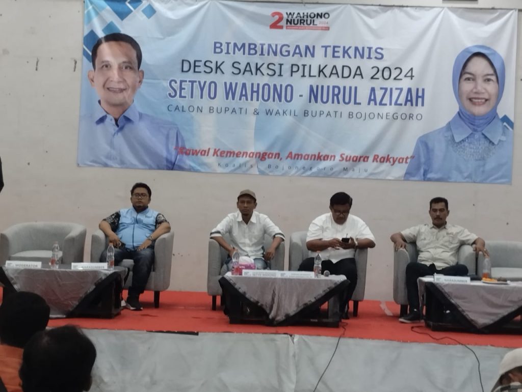 Sementara Ahmad Supriyanto, S.Pd. MH. Sektretaris Tim Pemenangan pasangan 02 Setyo Wahono – Nurul Azizah usai acra giatan sosialisasi Bimbingan Teknis ditempat uang sama dikonfirmasi awak media, menerangkan Agenda hari ini adalah pembekalan saksi timdes pilkada koalisi Bojonegoro Maju 2024. Saksi pasangan no urut 2 Setyo Wahono – Nurul Azizah untuk seluruh kabupaten Bojonegoro sebanyak 2.120 saksi TPS, ada 4.30 koordinator saksi TPS, ada 56 saksi TPK, ada 2 saksi KPU jumlah total 2068 saksi