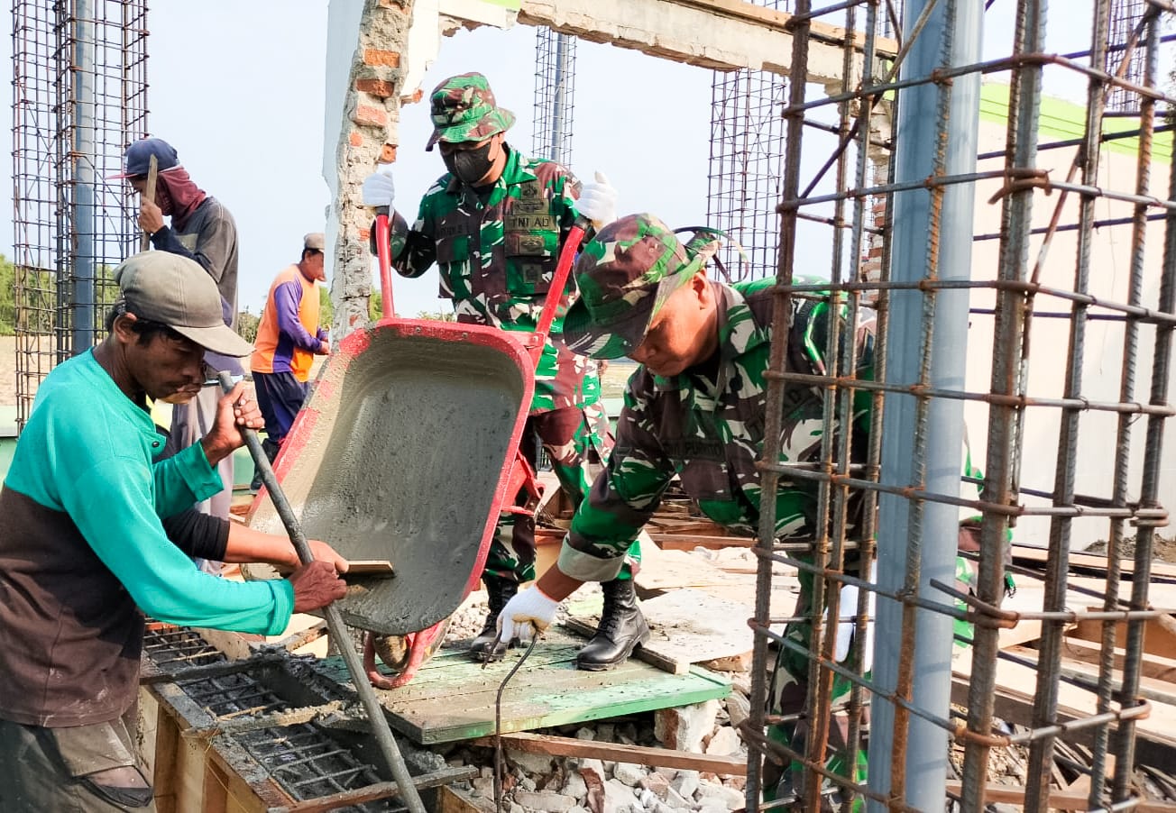 Beranda » Tumbuhkan Semangat Gotong Royong, Babinsa Kodim Bojonegoro bantu Pengecoran Pondasi Renovasi Masjid