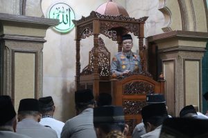 Setelah sambutan, kegiatan dilanjutkan dengan kultum dan bersalam-salaman. Sebagai bentuk kepedulian, Kapolres juga menyerahkan infaq untuk Masjid Besar Syariful Muttaqin, yang diterima secara simbolis oleh takmir masjid.